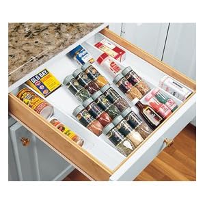 If you prefer to store your spices in a drawer then the expand-a-drawer organizer might be just what you need to get them organized. You can easily view the spices when you open the drawer.